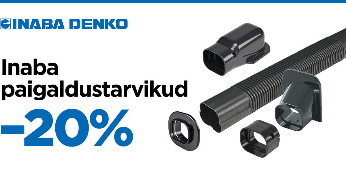 Valged, beežid ja antrasiit värvusega Inaba Denko paigaldustarvikud on nüüd lausa 20% soodsamad. Inaba Denko on kliimaseadmete paigaldustarvikute bränd nr 1, mille turuosa Jaapanis on üle 70%. Tarvikud on tuntud oma minimalistliku disaini poolest, sobides hästi kokku soojuspumpade siseosade ja moodsa interjööriga.